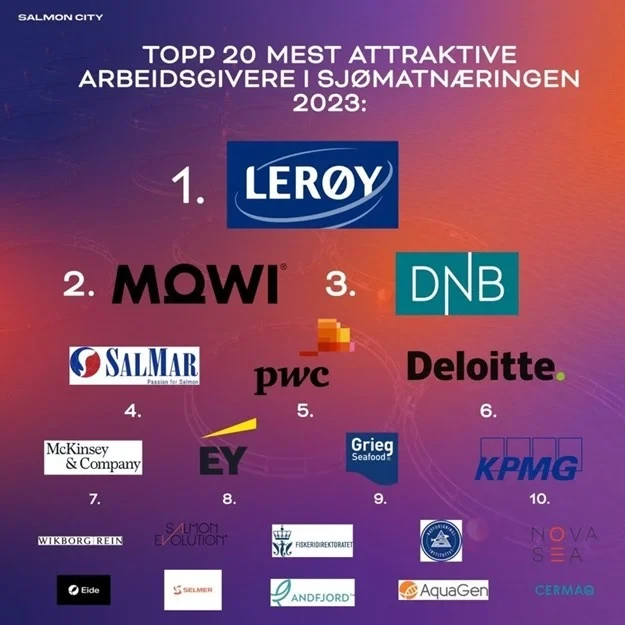 As we entered 2023, we were proud to be recognized as the most attractive employer in the seafood industry. This accolade was based on a student survey conducted by Salmon City, with participation from over 800 students across 12 different colleges and universities.