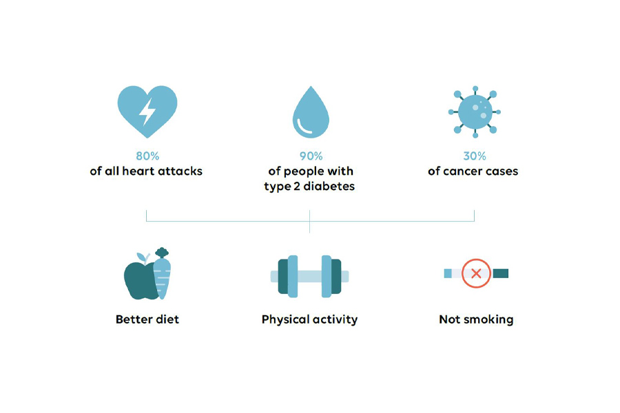 In 1999, 60% of all deaths and 43% of all illnesses were related to overweight, diabetes and osteoporosis. In 2025, these figures are expected to be 73% and 60% respectively.