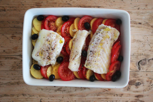 Chop up the fish and vegetables and place in an oven proof dish then bake in the oven. It’s no surprise that baked cod dishes are so popular – you won't find a simpler meal to make.