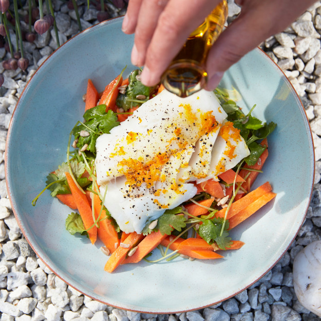 • Noen liker torsken naturell, mens andre foretrekker den krydret og marinert. La den gjerne ligger og marinere i noen timer før du setter i gang, da blir smakene mer fremtredende. Prøv med olje, chili, urter, soyasaus eller sweet chili saus, men vent med salt og sitron til maten er på tallerkenen dersom du bruker aluminiumsform eller -folie.