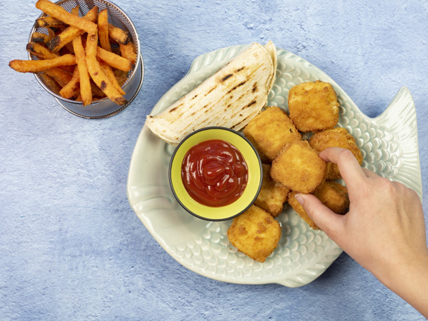 Prøv den uslåelige kombinasjonen av mykt og sprøtt. Wraps med crispy nuggets og salat kommer til å bli en sikker vinner på middagsbordet! Sett aluminiumsformen som torskenuggetsene kommer i rett i ovnen, kutt opp crispisalat, varm lefsene og sett frem ketchup, lime og mais. Voilà! Enklere enn som så blir det ikke.