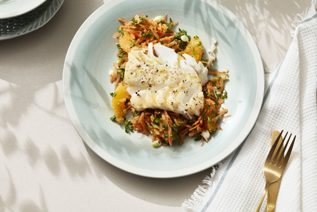 Denne nydelige retten med torsk, appelsin og gulrot er blitt en klassiker for en grunn. Smak selv og du skjønner hvorfor! Foto: Øystein Klakegg
