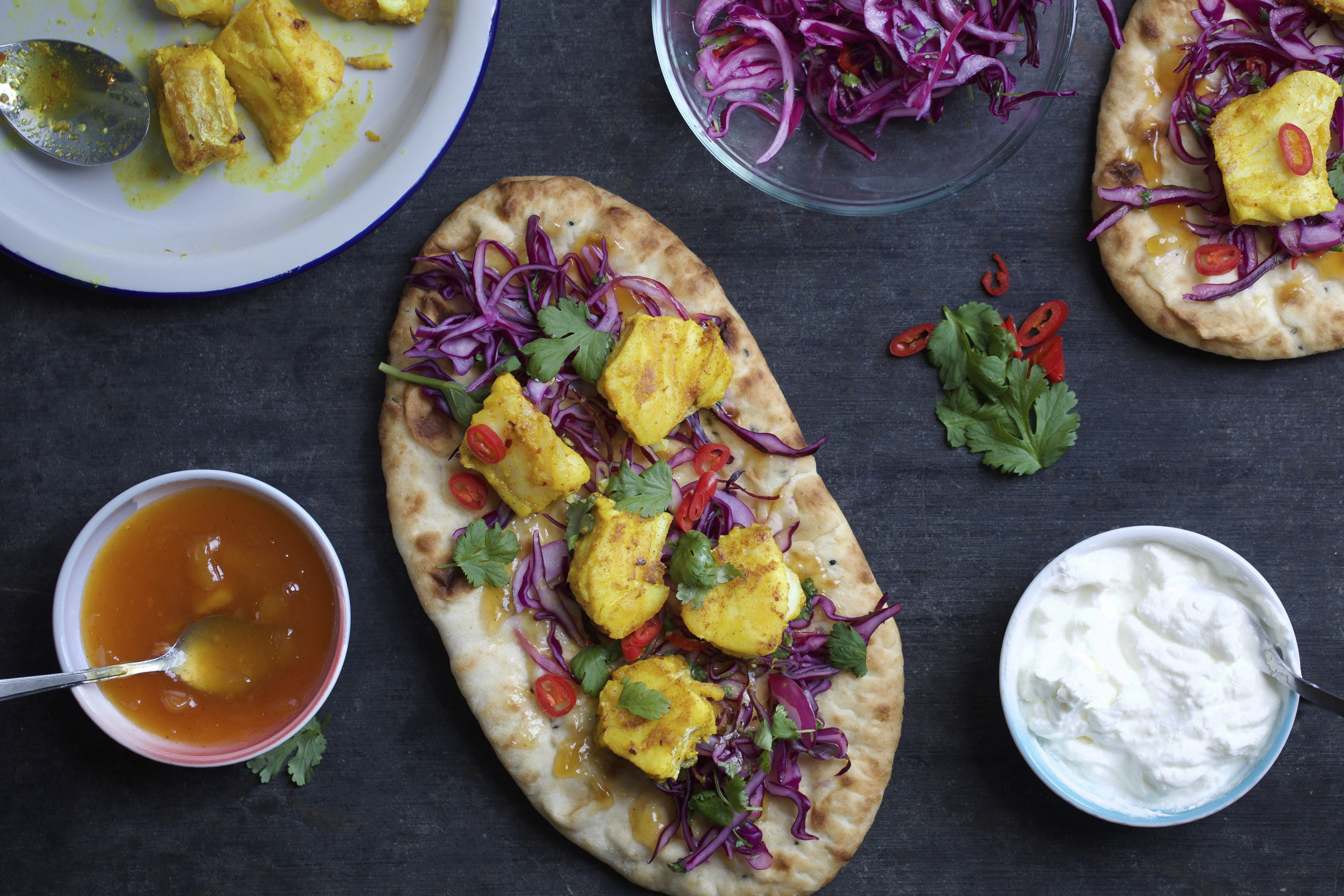 Karristekt torsk på nanbrød