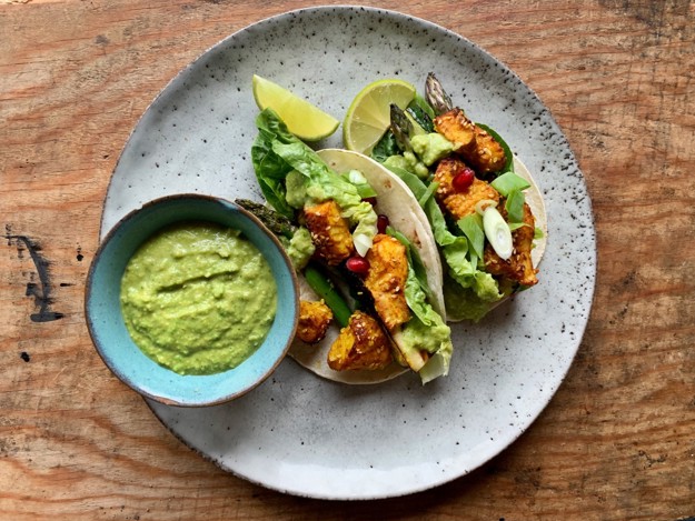 3. Slik har du garantert ikke spist taco før! Karrimarinade og kokosdressing er kanskje nye ingredienser å putte i tortillalefsen, og gir både hete og sødme i denne fantastisk friske og gode oppskriften.