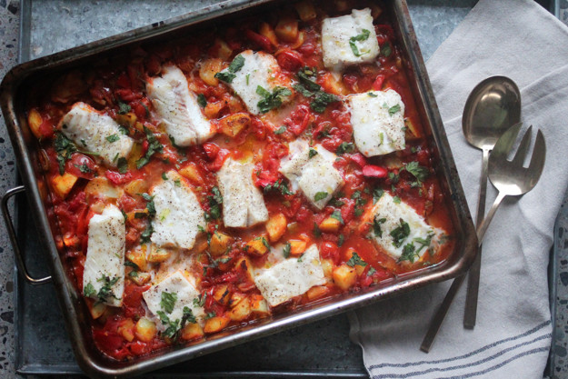 - Drømmer du om en sunn, smaksrik og digg hverdagsmiddag, som i tillegg er rask og enkel å lage? Denne herlige formen med torsk og «heit» tomatsaus er full av gode smaker og kan minne om en kjapp og enklere variant av klippfiskklassikeren bacalao. Prøv den også med sei, steinbit eller kveite. Formen setter du rett på bordet sammen med godt brød og en frisk grønn salat som tilbehør.