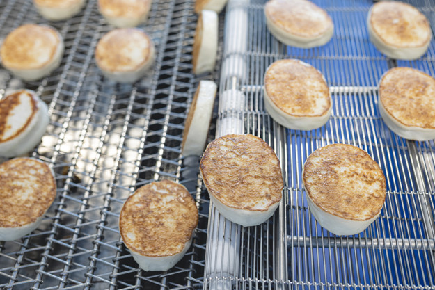 På den andre siden av veggen som deler de to produksjonsområdene, er fiskekakefabrikken. Her stekes det hundre fiskekaker i minuttet, og i travle tider kan produksjonen dobles. Fiskekakene avkjøles skånsomt før de pakkes i emballasje og sendes ut i butikken – og deretter havner i din handlekurv.