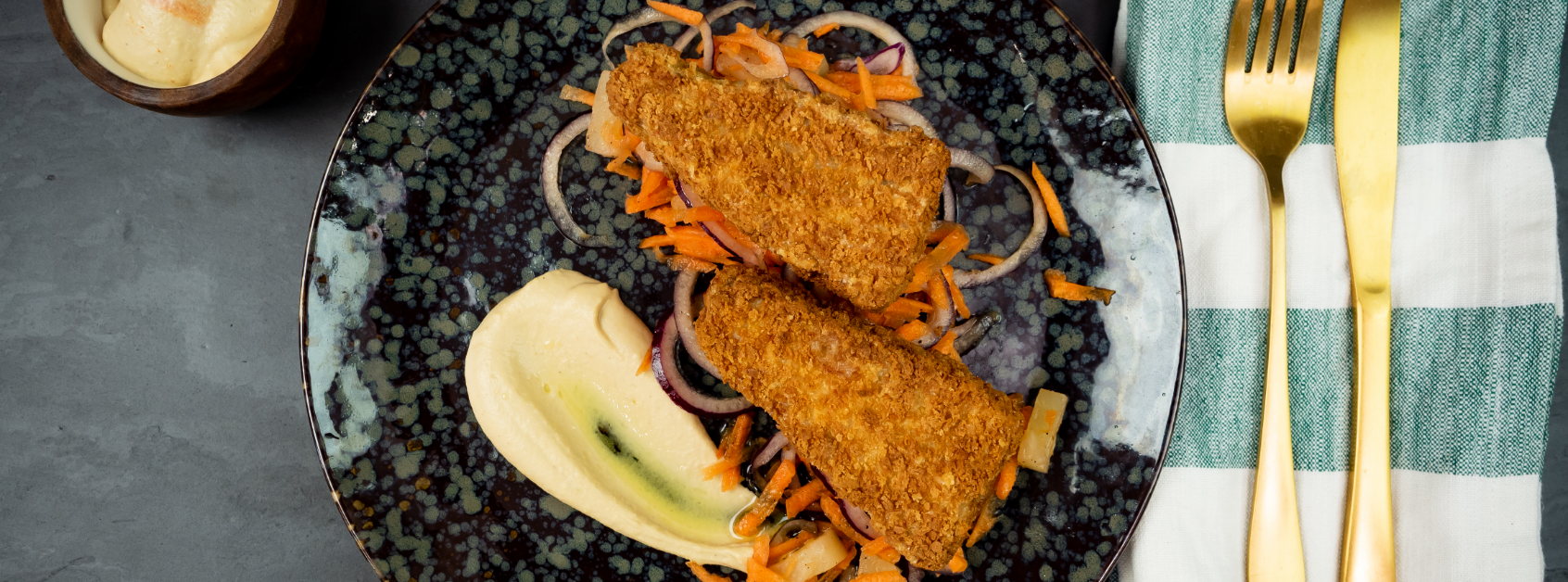 Panert sei med hummus