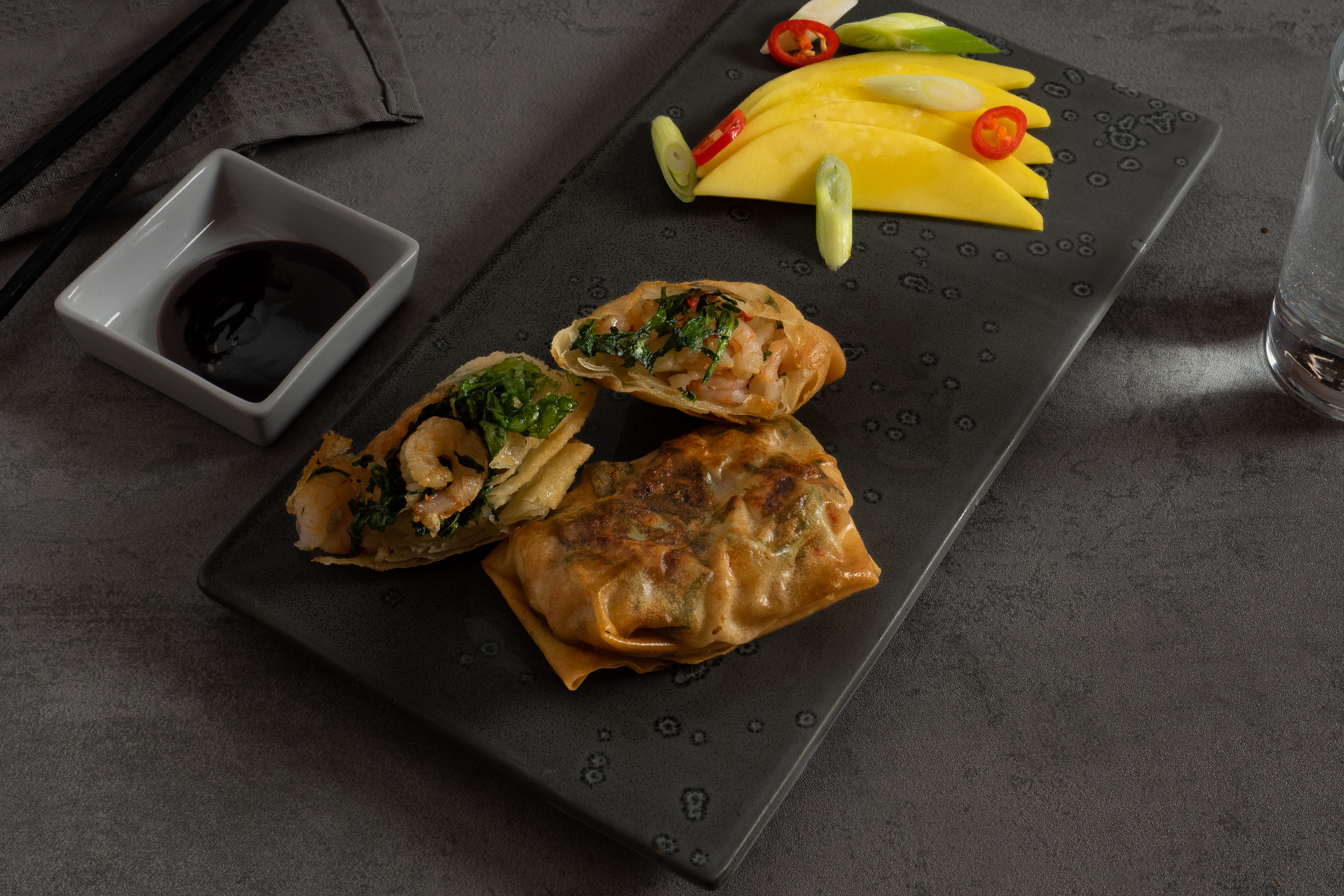 2. Laks kuttes i små terninger og tilsettes 3 ss majones, 3 ss soyasaus og 1 ss srirachasaus.