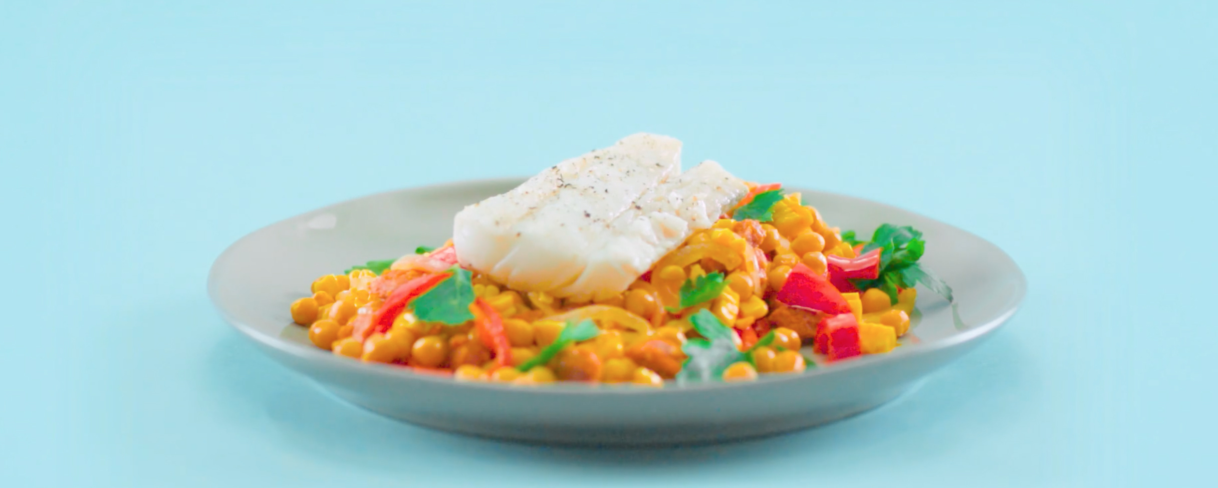 Dampet torsk med paprika, kikerter og chorizo