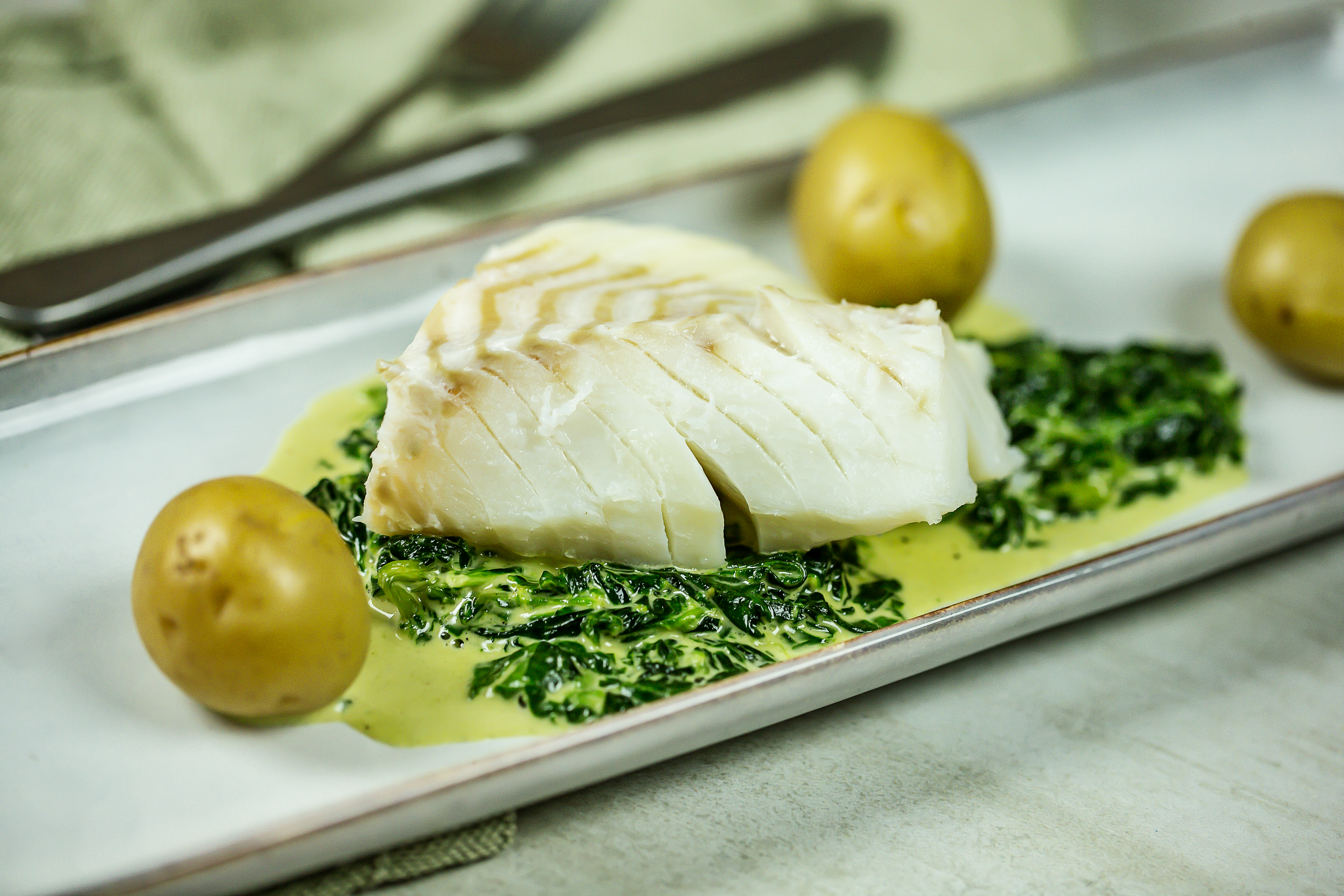 Lettsaltet torsk med kremet spinat