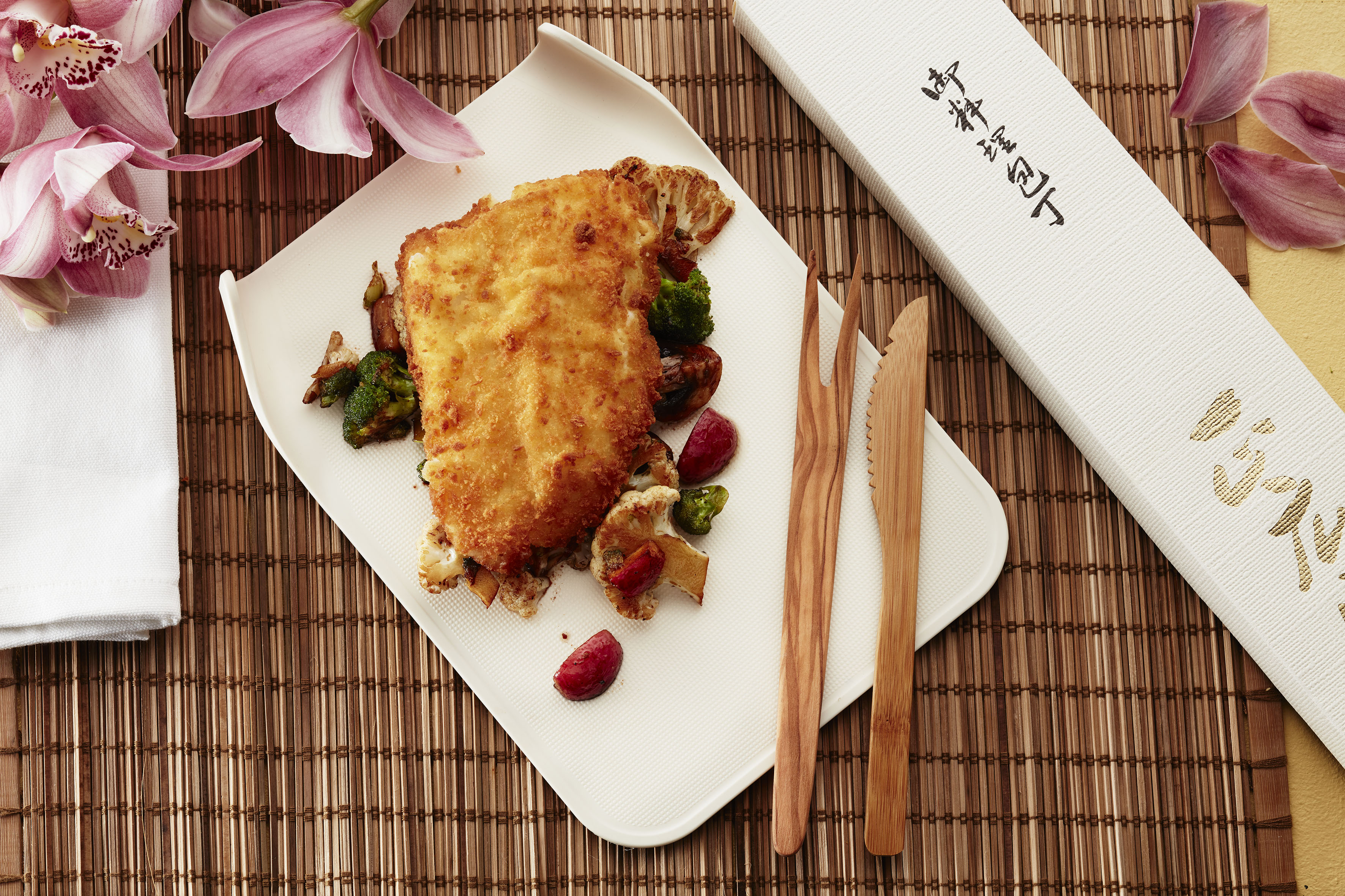 Pankopanerte torskefileter med teriyakigrønnsaker